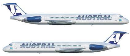 El afortunado primer portador del nuevo esquema es el MD-83 LV-AYD (c/n 53015/1818), que opera con la empresa desde 2004 y, con este, recibe el sexto esquema de su carrera (dos en Aero Lloyd, dos en Spirit y dos en Austral). El aparato fue detectado en proceso de repintado en el hangar que Austral posee en Aeroparque "Jorge Newbery" el 25 de mayo de 2007 y tiene programado su reingreso al servicio regular el 27 de junio; fecha que coincidirá con la presentación de la nueva imagen corporativa de a bordo para ambas compañías. Si bien algunos medios han anunciado qué máquinas seguirán el proceso de repintado, la realidad nos indica que la lista es aún desconocida. De hecho, los últimos ejemplares que pasaron por un C-Check (LV-BDE en Aeroparque y LV-VBZ en Costa Rica) conservan el esquema "conjunto". Está claro que este cambio no se produce por generación espontánea o en el vacío. El panorama aerocomercial nacional se agita al compás de rumores que hablan de la separación de ambas empresas y de la re-estatización de Aerolíneas Argentinas. En España, las cosas no son muy diferentes y el grupo Marsans parece inclinarse a reducir sus operaciones en América Latina y emprender con vigor la compra de Iberia. No en vano, el cambio de imagen de AU coincide con el cambio de razón social de la filial chilena del grupo, que dejará de llamarse Aerolíneas del Sur para transformarse en Air Comet Chile. De allí que nuestro titular, más que una aseveración, deje planteado un gran interrogante: ¿El nuevo esquema de Austral es solo el comienzo de una nueva vida para esta compañía? |