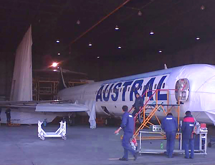 Buenos Aires (23/6/2007). El proceso que podríamos definir como "el renacimiento" de AU parece tener origen hace poco tiempo. Pero, recapitulando un poco, esta historia se origina en el año 2001, cuando los actuales dueños de Aerolíneas Argentinas y Austral (el grupo español Marsans) se hizo cargo de ambas compañías. Como muchos otros administradores (estatales y privados) que tuvieron control de la empresa, Marsans intentó implementar lo que, pasado el tiempo, sigue demostrando ser prácticamente imposible: fusionar Aerolíneas Argentinas y Austral en una sola empresa... Claro esta que cualquier empresario, dueño de dos empresas del mismo rubro, deseoso estaría de integrarlas en una sola razón social si ambas desarrollan la misma actividad y no tienen objetivos diferentes. Ésta seguramente fue la intención con la cual, allá por principios de 2002, tomaron la insólita decisión (a escala aerocomercial nacional y mundial) de pintar los aviones de ambas empresas de la misma forma. En el esquema adoptado solo subsistía el cóndor (distintivo histórico de Aerolíneas Argentinas) y la única concesión para con Austral era mantener su nombre a un lado del fuselaje (el derecho). Pero esta medida no se hizo extensiva a la flota de fuselaje ancho, donde se aplicó solo el nombre de la compañía de bandera. Todo esto fue interpretado como una jugada clave por erradicar definitivamente el nombre y colores distintivos de Austral. Lejos de constituir una estrategia de marketing más, la iniciativa daba una importante lavada de cara a ambas compañías después de la crisis del año 2001 y las rescataba tras una especie de resurrección de sus “casi cenizas”, como el ave fénix. Visto hoy con la perspectiva que nos otorga el paso del tiempo, el cambio no fue más que un “simple intento”. Desandando el camino... Tras casi cinco años volando, como mencionamos, con un esquema idéntico en la flota de ambas empresas, comenzaron a tejerse conjeturas y circular rumores que indicaban que a principios del año 2006 se realizaría un nuevo cambio de esquema de pintura en los aviones de Austral. Esto se atribuía principalmente a requerimientos y reclamos de los pilotos, tanto de Austral como también de Aerolíneas Argentinas, quienes buscaban terminar de una vez por todas con la confusión generalizada a la cual llevó la igualación de colores. No podemos dejar de destacar que la imagen compartida desorientaba a los pasajeros, quienes en su mayoría comenzaron a descartar Austral como tal, interpretando que había desaparecido como empresa aérea.
