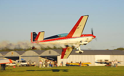 "El mago de La Plata”, tal como era conocido Julio Benvenuto, realiza un vuelo rasante en el aeródromo de General Rodríguez. Este reconocido piloto de gran experiencia en una variada gama de aeronaves, se perfeccionó en el vuelo acrobático y tuvo destacadas participaciones en competencias internacionales. Lamentablemente la tragedia se ensañó con él el 11 de marzo de 2007, mientras realizaba una de sus rutinas acrobáticas en la 26 Convención en Vuelo de la EAA Capítulo Argentino (foto Leo González/Hangar 57).