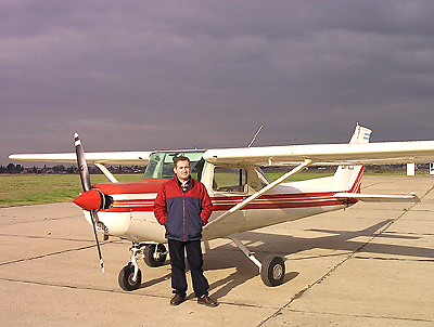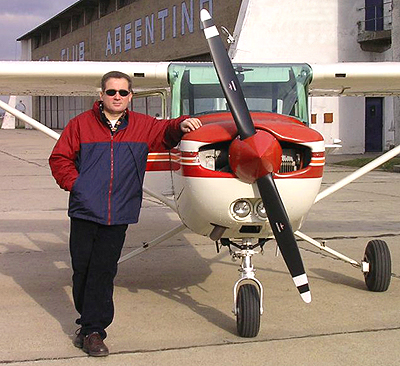 Testimonios de Morón y Escobar (12 de diciembre de 2007). Sea por planes de carrera, sea por interés de satisfacer una vieja vocación, muchos entusiastas inician el curso de pilotaje que brinda acceso a la licencia de piloto privado. Pista 18 y su grupo de usuarios, originalmente poblado por "spotters químicamente puros", hace tiempo que viene mutando para acoger (¡de buen grado, por cierto!) a un creciente número de pilotos (pasados, presentes y futuros). Dos de ellos, de hecho, acaban de concretar sus primeros vuelos solos y se entusiasman ante la idea de relatar esa maravillosa "ceremonia de iniciación". Juan Carlos Zabalgoitia (46 años, casado, tres hijos) decidió iniciar su curso de pilotaje en el Aero Club Argentino de San Justo (B.A.) para concretar un sueño de juventud que las vueltas de la vida le hicieron postergar varias veces. Esteban Gabriel Brea (25 años, soltero) es estudiante de la Licenciatura en Administración Aeronáutica y encaró el curso como parte integral de su futuro currículum profesional. Por ello, hace tres años viene capacitándose en el arte del vuelo motor, originalmente en la escuela EPPA de San Fernando y últimamente Aero Club Escobar (B.A.). Juan Carlos Zabalgoitia en el Cessna 152 LV-OCJ Ya venía con 20 y tantas horas de vuelo del curso de piloto privado y sabía que el primer solo se aproximaba. En las últimas salidas nos la pasábamos practicando circuitos, aterrizajes, toque y despegue y esas cosas. Este jueves a la mañana la "meteo" está ideal. Día glorioso, de esos que una vez recuerdo alguien dijo son "para que vuelen brigadieres". Llego al campo y el instructor no está en tierra, ha salido con alguien. Mientras lo espero en la plataforma, disfruto el lugar, el canto de los pajaritos, el cielo azul y el verde de ese vergel que es el aeródromo de San Justo en medio del cemento del Gran Buenos Aires. Irónicamente, charlando con otro piloto, comento: "en cualquier momento me largan". Finalmente llega el avion. Lo chequeo y noto que pierde combustible por la válvula de drenaje del tanque del ala izquierda. Se lo hago notar al instructor y el mecánico lo arregla en 15 minutos. Salimos. Todo bien. Vamos a zona de trabajo donde permanecemos como 45 minutos haciendo todo tipo de maniobras: Vuelo lento, recuperación de pérdida, emergencia simulada y esas cosas... Volvemos a San Justo, circuito y varios toque y despegue. En eso hacemos aterrizaje total y el instructor me dice: "Vamos a la cabecera que vamos a hacer un despegue en campo blando". "¡Que boludez!", pienso yo. "A esta altura hacer esa maniobra que ya hemos practicado tantas veces". A 90 preparamos el avión para despegue: Flaps 10º, mezcla rica, aire frío. En eso veo que mi instructor empieza a sacarse el cinturón mientras dice: "Bueno. Te vas a hacer un circuito solo. Yo me bajo. Acordate que el avion va a pesar 90 kilos menos. ¡Chau!" Cierra la puerta y se va... Y ahí comprendo que el momento ha llegado. En realidad no podía ser mejor. Día perfecto de otoño, cielo despejado, poco viento, aire frío, alta densidad. Y ahí quedo yo, solo frente a una de esas grandes circunstancias de la vida.