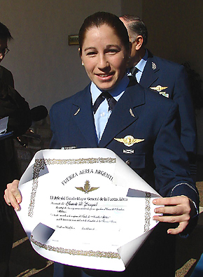posa para las cámaras tras recibir su brevet de aviadora militar (foto Diego Rojo). |