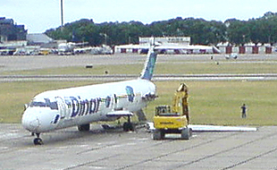 Buenos Aires (7 de marzo de 2008). “Nada más queda”. Tal vez esta frase resuma el presente de lo que llegó a ser la tercera línea aérea en importancia de la República Argentina en su época de esplendor. Lejos de pretender hablar aquí de la historia de Dinar Líneas Aéreas, antes de encarar de lleno la aeronave que nos interesa, vale la pena hacer un breve racconto del nacimiento, desarrollo y fin de una de las tantas empresas aéreas privadas que supo tener Argentina y que, en el año 2002 finalizó sus operaciones, terminando como tantas otras con el desenlace menos deseado.