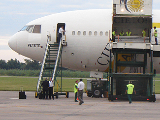 Cielos Airlines fue fundada en 1997 como una empresa dedicada al transporte no regular de carga aérea internacional, especializada en productos perecederos. Inicialmente operó tres Boeing 707 propios y un MD-11 en “wet lease” (alquiler con tripulación), pasando más tarde a volar con DC 10-30F en la modalidad de “dry lease” (alquiler sin tripulación). Sus destinos habituales incluyen las principales capitales de Latinoamérica, Miami y Los Ángeles en Estados Unidos. También existe una conexión con Luxemburgo y se realizan vuelos charter como los realizados a Tucumán. Según la compañía, su listado de clientes habituales incluye a los principales forwarders mundiales, así como a las más reconocidas empresas de Carriers, lo cual indudablemente le garantiza una importante carga de trabajo. Los vuelos a Tucumán fueron realizados principalmente con dos aeronaves: El DC-10-30 N609GC (c/n 46932, l/n 158) y el DC-10-30CF OB-1749 (c/n 46891 l/n 127). El primero de ellos voló por primera vez el 20 de mayo de 1974 y fue convertido a la versión carguera en el 2000. El segundo, por su parte, voló por vez primera el 25 de septiembre de 1973 y el 6 de julio de 2003 sufrió un accidente durante el aterrizaje en el aeropuerto “Afonso Pena” (SBCT/CWB) de Curitiba (Brasil). La aeronave derrapó sobre la pista 15, de 2.215 metros de longitud, y acabó por detenerse unos 300 metros más allá de la cabecera 33. La aeronave resulto con daños en el motor número uno y en el tren de aterrizaje ya que colisionó con las antenas del sistema de aterrizaje por instrumentos "ILS" (para ver una foto del accidente, pulse aquí). Ambas aeronaves cuentan con un extenso historial, pues en sus 34 años de vida, pasaron por numerosas compañías aéreas, fueron rematriculadas numerosísimas veces y llevaron una gran diversidad de esquemas de pintura a lo largo de los años. Para el aeropuerto de Tucumán, su presencia representó un nuevo paso en su consolidación como estación de referencia en el Noroeste Argentino. Queda claro que la aeroestación tucumana es una opción valida para la exportación vía aérea y desde ya es deseable que este tipo de operaciones no solo se repitan, si no que se transformen en vuelos regulares de carga con destino al exterior. |