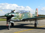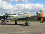 Tres vistas del solitario EMB-312 Tucano E-113, que fue expuesto pero no voló.