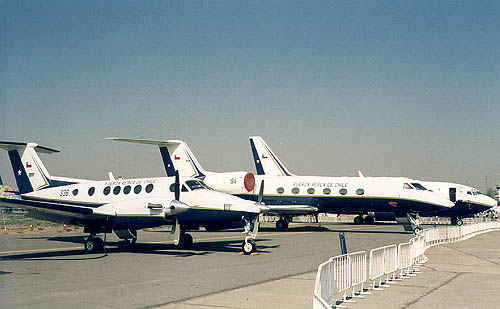 La flota VIP del Grupo de Aviación No.10 fue expuesta estáticamente en el sector Sur de la muestra. De izquierda a derecha: Super King Air B200, Gulfstream IV y Boeing 737-500 (foto C. Ay).