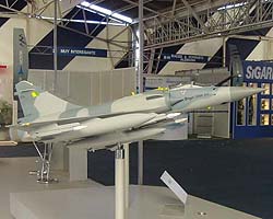 Junto con el F-16 recientemente seleccionado por Chile, el Mirage 2000BR constituyeron dos de los principales protagonistas de la feria (foto M. López).