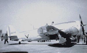 Un cazabombardero Republic P-47D-35-RA Thunderbolt, el “4” (USAF 44-90210), fotografiado a la llegada de los Estados Unidos, en el Aeropuerto Central de la Ciudad de México, probablemente en diciembre de 1945 (foto vía Ing. Enrique Velasco P.).