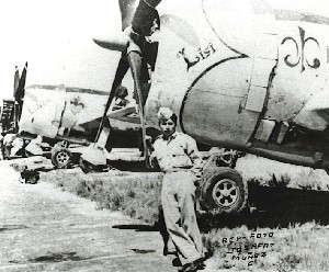 Republic P-47D del Escuadrón 201 durante la época en que los aviones recibieron decoraciones y pin-ups. En esta imagen se observan el PZT-1020 “Lisi” y el PZT-1010 “Linda” (foto Josafat Muñoz C. vía Ing. Enrique Velasco P.).