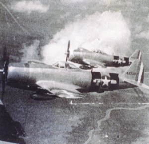 Volando aviones prestados, el escuadrón completó su entrenamiento previo y entró en combate mientras se preparaba para la llegada de sus propios aviones bajo la ley norteamericana de préstamo y arriendo (más conocida por su nombre en inglés “Lend-Lease”). Éstos comenzaron a llegar a finales de junio y comprendieron unas 23 máquinas de diferente subtipos del P-47D (un P-47D-11-RA, cinco P-47D-15-RA, dos P-47D-16-RE, tres P-47D-21-RA, un P-47D-22-RA, cuatro P-47D-23-RA y siete P-47D-28-RA), aviones con los que el escuadrón participó en los últimos meses de la Guerra del Pacifico.