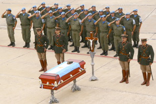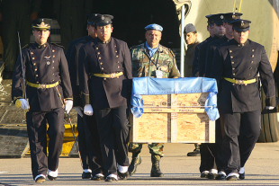 del oficial Uruguayo fueron escoltados por una guardia de Honor de la