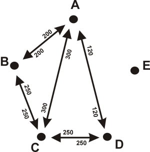 a cinco localidades (A, B, C, D y E), y que cada una de ellas tiene la