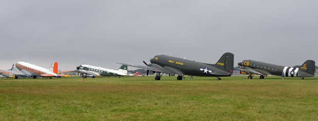 75 aniversario de los DC-3s llegaron aproximadamente 35 a Oshkosh, todos