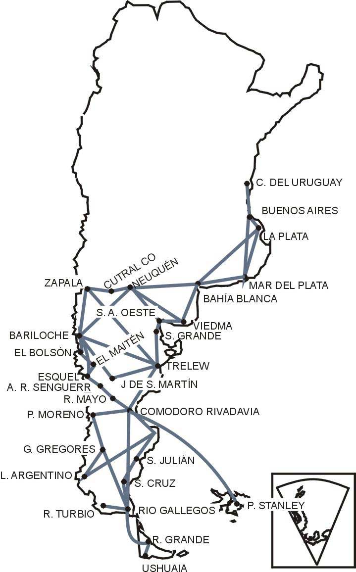 Rutas operadas por LADE en 1978 (imagen: archivo Pablo Luciano Potenze).