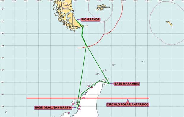 aeronave. En esa ocasión se sobrevolaron bases argentinas Esperanza,