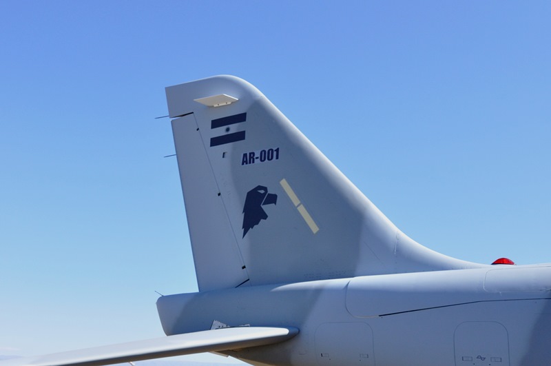 Matrícula empleada por FAdeA durante el período de pruebas, también se aprecian las marcas correspondientes al Grupo 6 de Caza. (Foto: Andrés Rangugni)