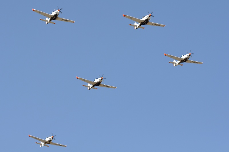 Posteriormente se procedió a adoptar el dispositivo para el desfile, el componente aéreo fue encabezado por una sección de Beechcraft B-45 Mentor (EX-034 y EX-086) pertenecientes al Centro de Ensayos en Vuelo (CEV). Estos fueron seguidos por dos escuadrillas de Beechcraft T-6C/C+ Texan II (E-301, E-302, E-303, E-304, E-306, E-307 y E-309), el dispositivo fue cerrado por cinco Grob G 120TP-A (E-504, E-506, E-507, E-508, E-510).