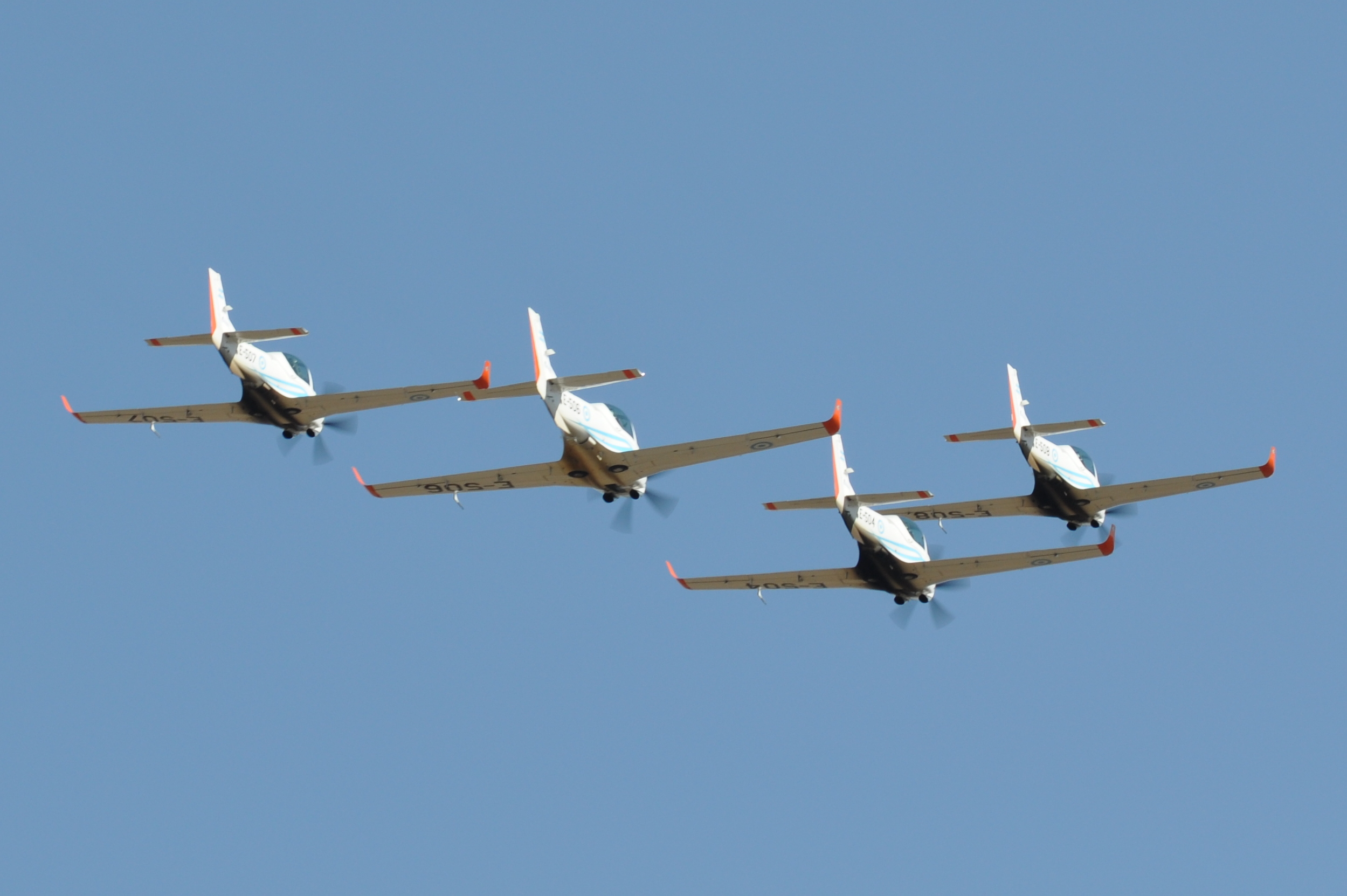 Escuadrilla de Grob 120TP-A durante el dispositivo aéreo. (Foto: Mauricio Chiofalo)