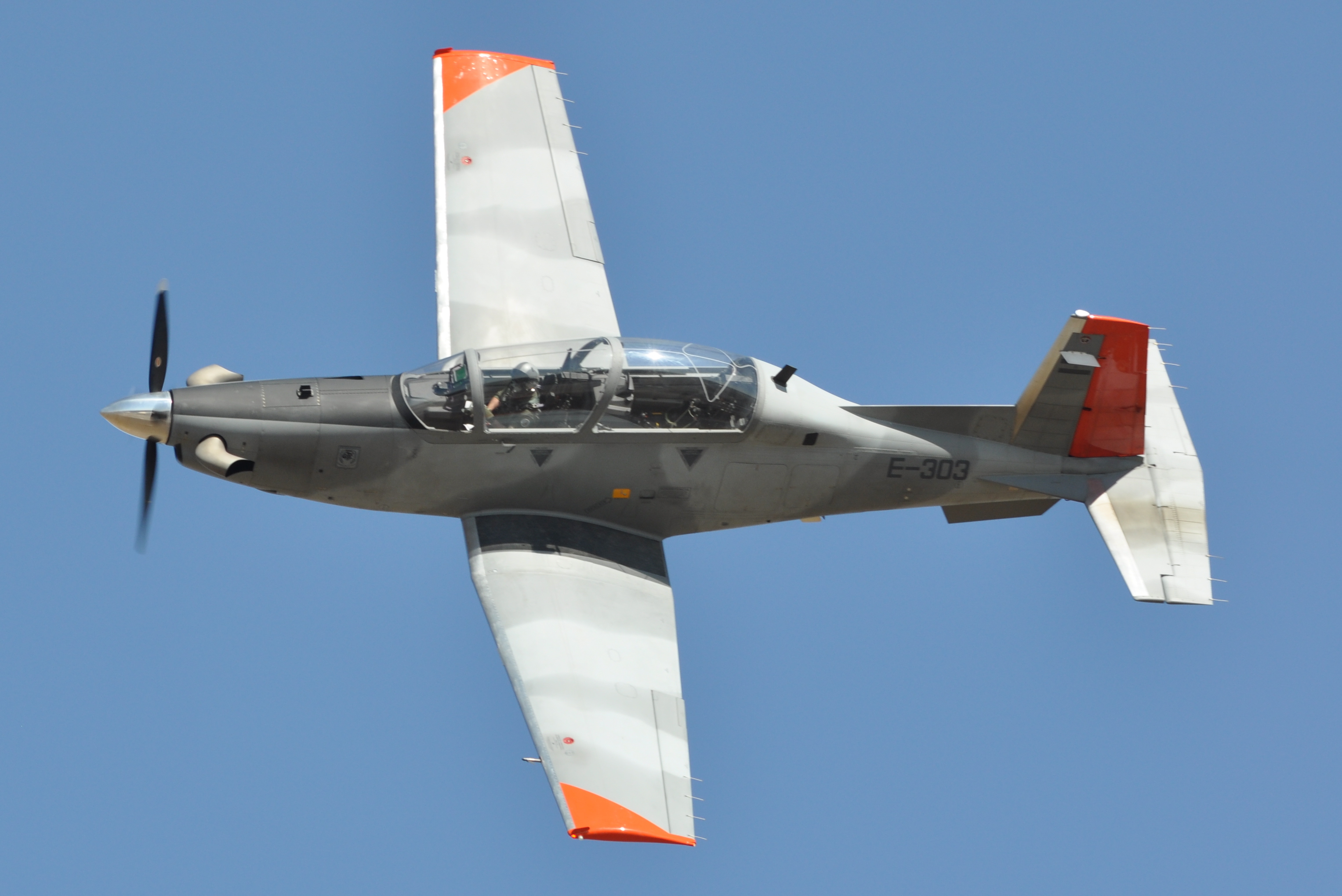 Una de las novedades observadas durante la ceremonia, el último Pampa III producido por FAdeA. (Foto: Andrés Rangugni)