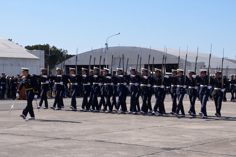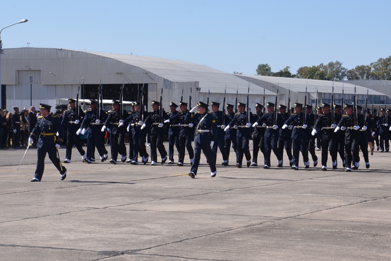 Seguidamente hicieron lo propio las distintas Secciones del Cuerpo de Cadetes de la Escuela de Aviación Militar, los aspirantes de la Escuela de Suboficiales de la FAA (ESFA), los miembros del Instituto de Formación Ezeiza (IFE), los liceístas del Liceo Aeronáutico Militar (LAM) y los alumnos del Curso Básico Conjunto de Aviador Militar (CBCAM), mientras estos últimos rendían honores una sección de T-6C+ Texan II realizó una demostración frente al palco de autoridades.
