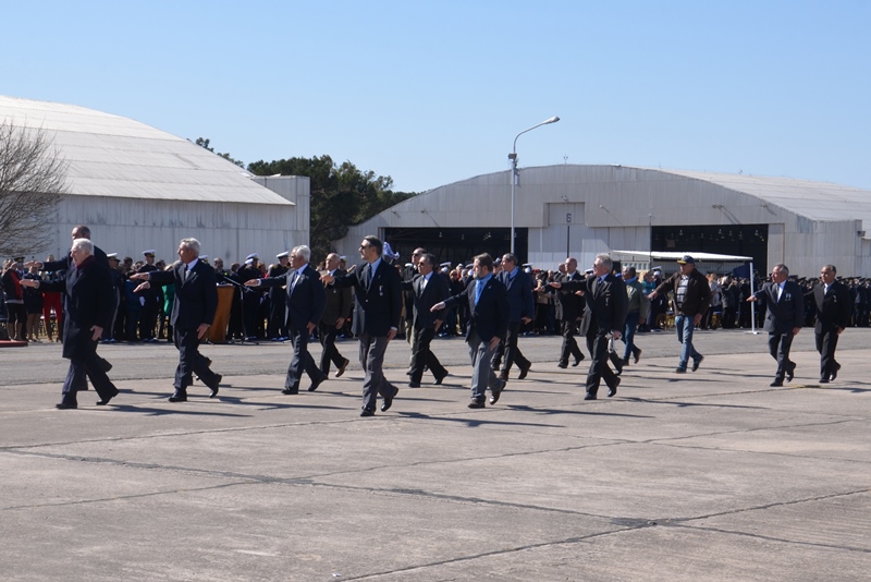 El dispositivo terrestre continuó con el paso del personal subalterno del Curso de Certificación de Formación Técnica, del Escuadrón Tropa de la Guarnición Aérea Córdoba, los alumnos del Instituto Provincial de Educación Técnica 251 de la Guarnición Aérea Córdoba, la “Agrupación Banderas de Despliegue de la FAA”compuesta por las banderas de unidades y organismos que combatieron durante el conflicto del Atlántico Sur, y finalmente los veteranos de Guerra de la FAA. Tras ello se retiró la Banda de Música y Guerra.