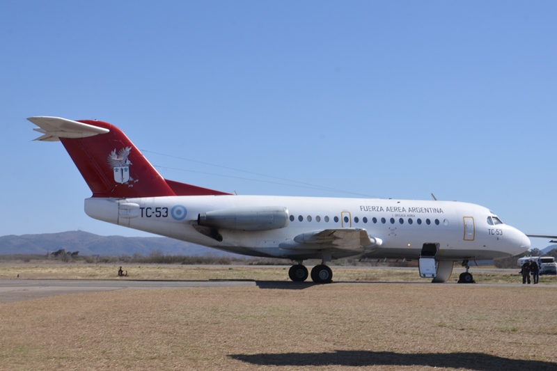 El Fokker F-28 Mk.1000C TC-53 fue uno de los encargados del traslado de autoridades e invitados especiales desde Buenos Aires. (Foto: Esteban Brea)