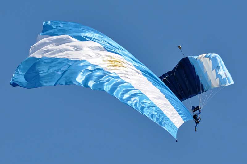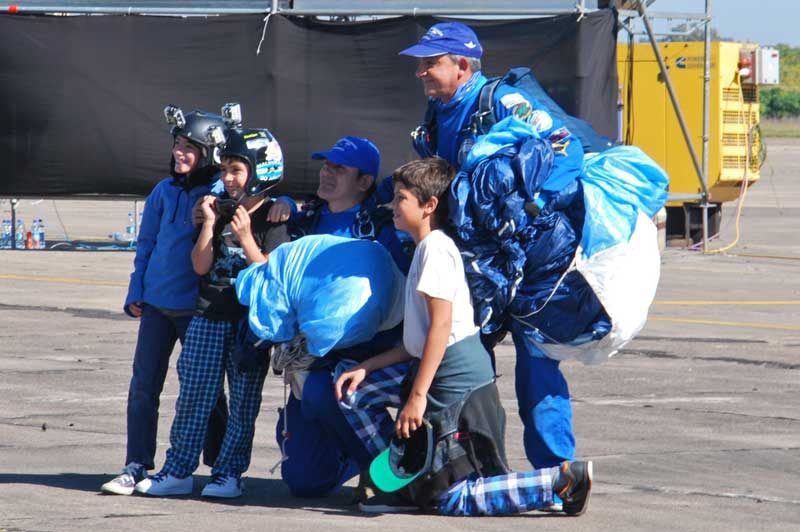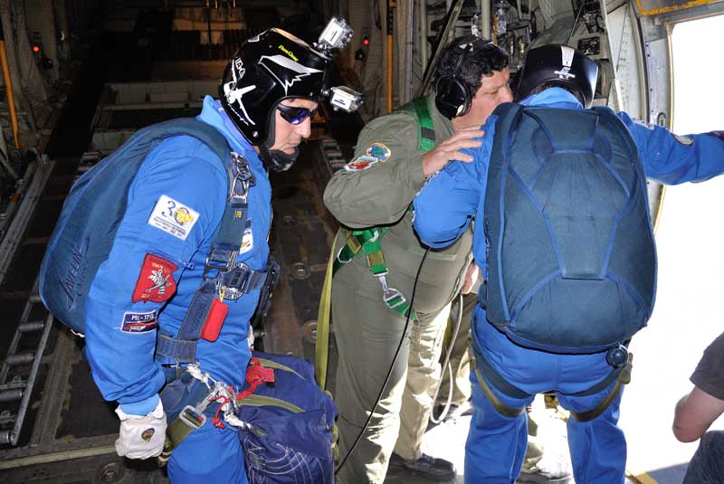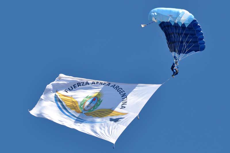 Mientras ello sucedía, dos miembros del equipo de demostración de paracaidismo “Águilas Azules” descendieron con una bandera de la FAA y el Pabellón Nacional. Posteriormente se retiró la Banda de Música Especial Bautismo de Fuego, y el C-130H Hercules realizó un nuevo pasaje rasante frente al palco de autoridades. Finalmente, el Jefe de la Agrupación informó que la ceremonia había finalizado, procediendo al denominado Vino de Honor realizado en el hangar del SDA Fokker F28.
