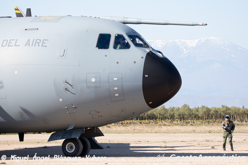 Tras el despegue y autorizado por los CCTs, el avión vira por su izquierda y se aleja en dirección al Moncayo para alinearse de nuevo a la pista y realizar otra toma. El A400 va asumiendo sin pausa su papel como espina dorsal del transporte aéreo táctico del Ejército del Aire. El Plan de Adiestramiento diseñado por el Ala 31 va superando hitos y cumpliendo la planificación que permitirá acometer y superar las misiones que hasta ahora había desempeñado el recientemente retirado C-130 Hércules.