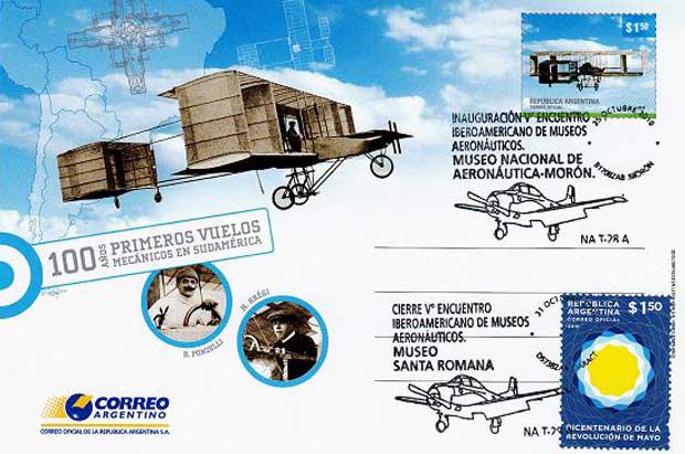 Por otra parte, el Correo Oficial Argentino, también preparó un par de matasellos especiales con motivo del V Encuentro Iberoamericano de Museos Aeronáuticos. Uno, para el inicio, en el Museo Nacional de Aeronáutica, Morón, Buenos Aires. El otro, para el cierre, en el Museo Santa Romana, Justo Daract, San Luis.