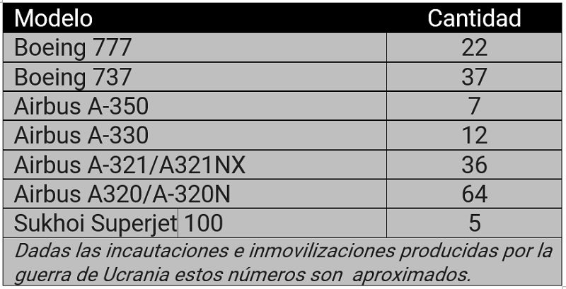 El primero de julio de este año Aeroflot declaraba una flota de 183 aviones, con una edad media de 6,6 años con el siguiente detalle: