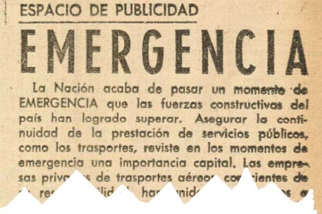 Pero el hecho de que los aviones privados no se hubieran plegado al paro abrió una nueva posibilidad de comparación. Las nuevas empresas eran chicas y débiles, pero habían salido a competir sobre la base de que sus servicios eran mejores, cumplían con los horarios y, ahora, podían agregar como argumento de calidad que volaban cuando Aerolíneas se veía afectada por un conflicto gremial. Nadie estaba seguro de que eso siempre sería así —pronto habría paros en las empresas privadas— pero ese día ese argumento sumaba, y AATA consideró conveniente ponerlo por escrito en los diarios, para que todos lo supieran.