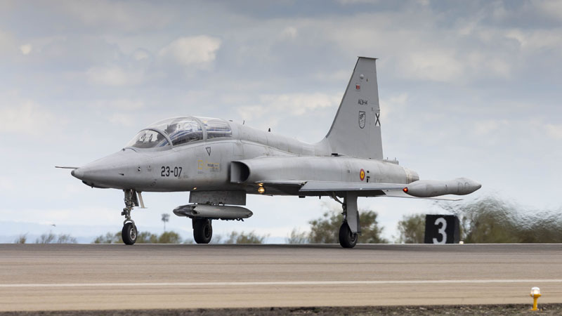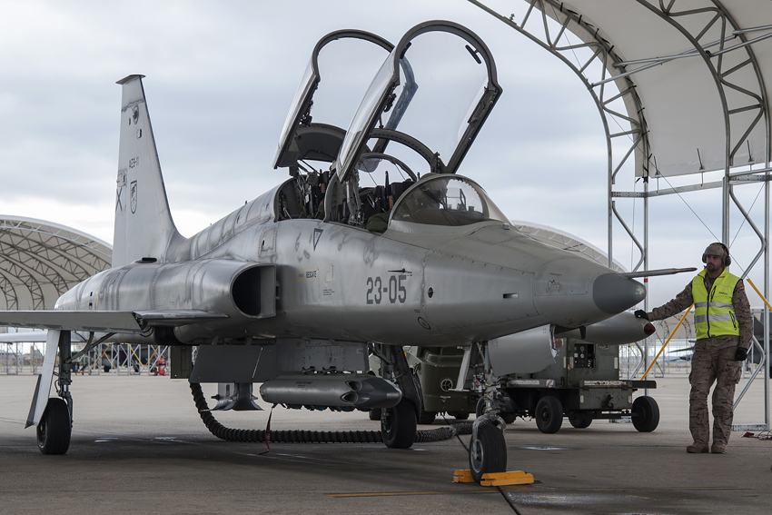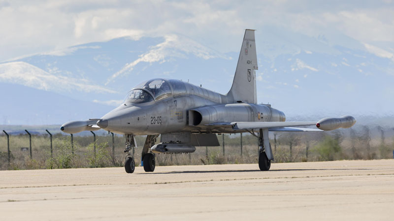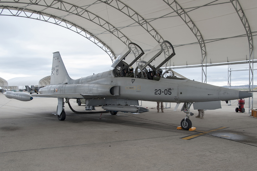 Durante estos días un clásico de la aviación surca los cielos de la capital aragonesa, los habituales F-18, C-130 y A400M de las Alas 15 y 31 comparten espacio aéreo estas semanas con los Northrop F-5 pertenecientes al Ala 23 del Ejército del Aire.
