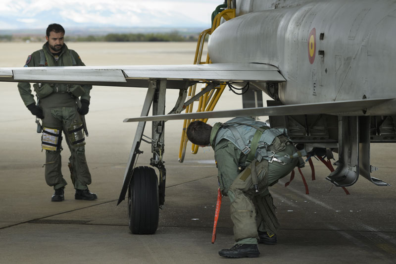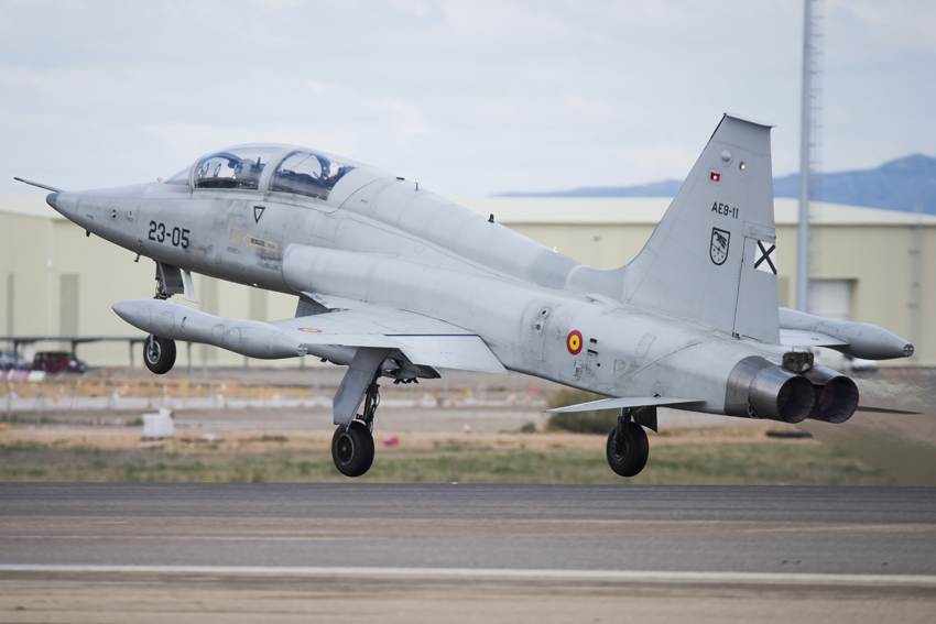 Estas semanas la meteorología tan inestable presente en el Valle medio del Ebro ha puesto las cosas más difíciles, con numerosas cancelaciones por malas condiciones en la zona de Bardenas. Es en este tipo de entornos es donde el equipo humano del Ala 23 muestra su potencial con capacidad de reorganizar sus planes con un único objetivo: que todos los alumnos aprovechen al máximo la estancia en Zaragoza. En algunas ocasiones en las que Bardenas presenta unas condiciones fuera de parámetros los F-5 pueden realizar vuelos de instrucción aprovechando la colaboración del Ala 15, basada en Zaragoza.