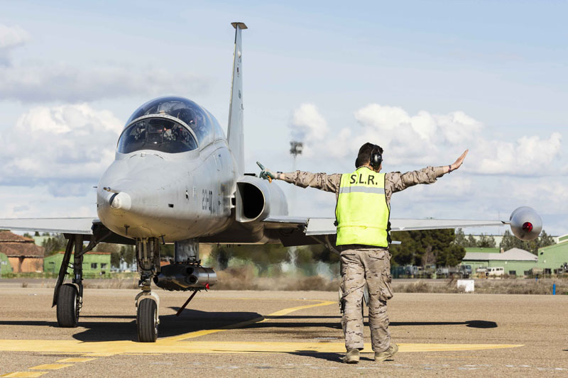 Estos destacamentos en Zaragoza duran normalmente dos semanas y durante ese periodo la actividad de la unidad es más elevada de lo normal. Se pueden llegar a volar hasta tres salidas al día, la premisa esencial es cumplir todos los objetivos marcados en el plan de instrucción. Tal y como se recupera la aeronave de una salida, el personal de tierra reposta el avión, lo rearma y éste queda completamente preparado para la siguiente misión, en la que otra pareja alumno-instructor volara a Bardenas para realizar el correspondiente ejercicio de tiro aire-tierra.