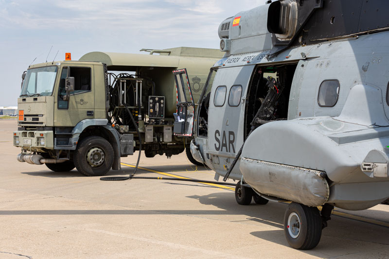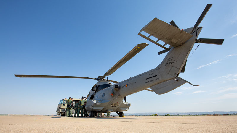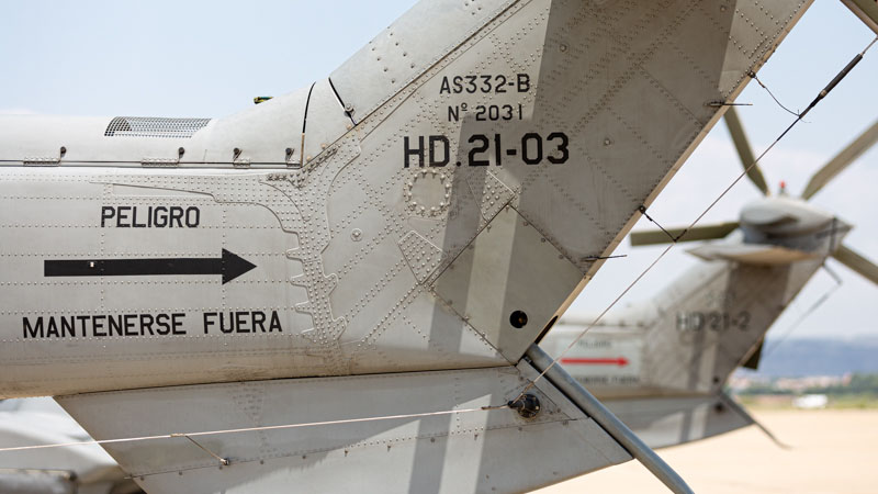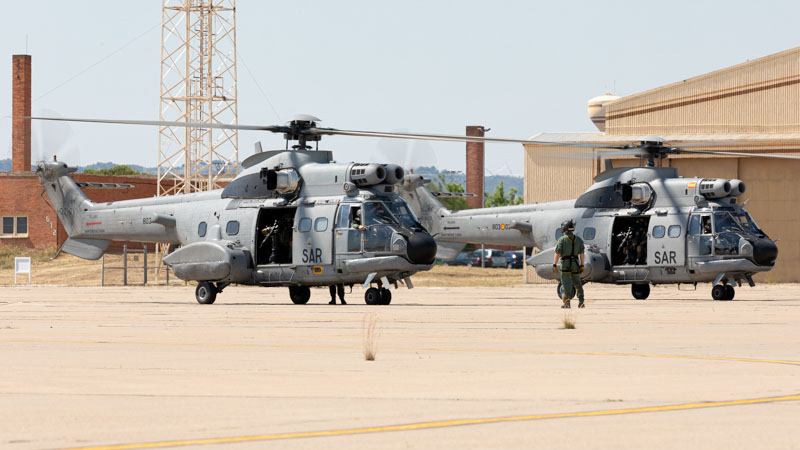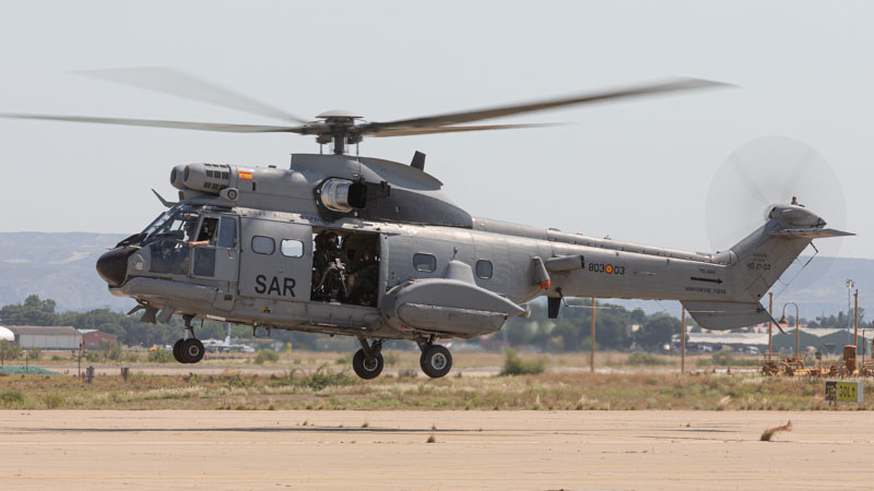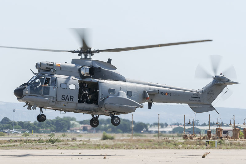 Base Aérea de Zaragoza, 24 de Junio de 2020. Son las 0945L y el sol comienza a apretar en la plataforma sur. La crisis del COVID19 ha supuesto una parada temporal en los destacamentos que habitualmente encontramos en la base zaragozana. Ese paréntesis finaliza hoy y los protagonistas son dos AS332 Super Puma del Ala 48 y sus tripulaciones. Los dos helicópteros han despegado a primera hora desde el aeródromo de Cuatro Vientos y después de realizar ejercicios de tiro en Bardenas vienen de camino a Zaragoza para poder repostar y volver ejercitarse durante varios periodos más a lo largo del día.