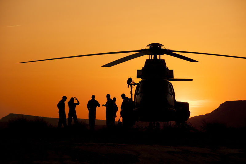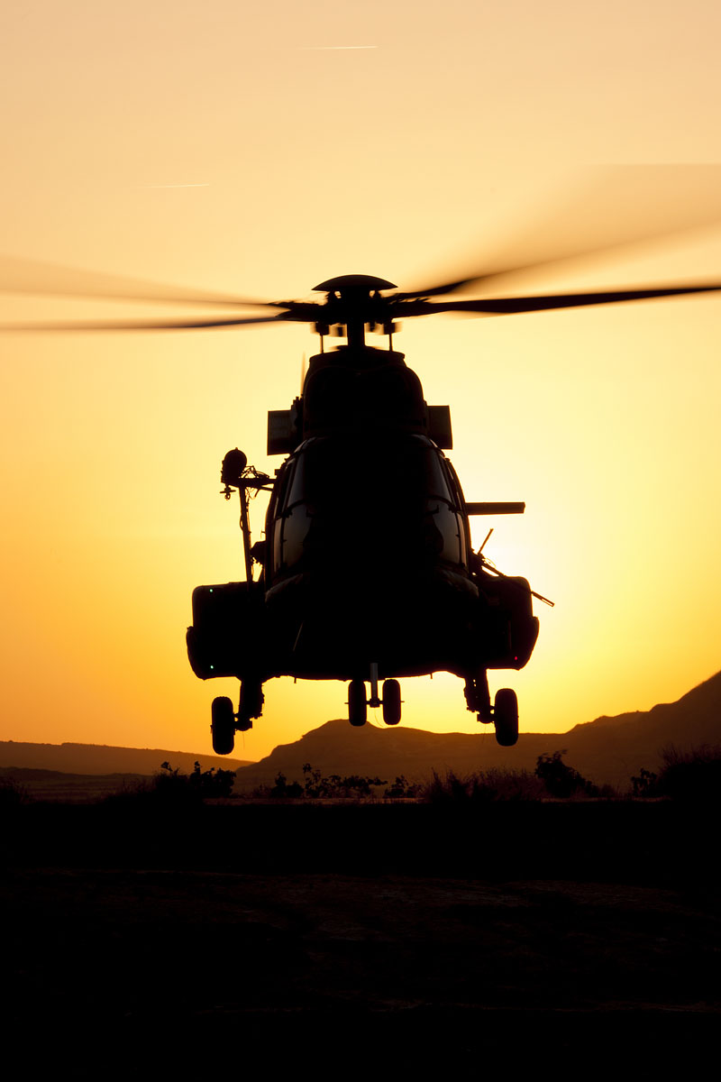 El sol de mediodía cae de pleno en la plataforma de la instalación zaragozana, todo el personal ocupa sus puestos y los rotores comienzan a moverse en el seco aire veraniego. Los mecánicos de vuelo hacen las últimas revisiones y retiran los calzos antes de que los helicópteros comiencen a rodar por el abrasador asfalto de la plataforma. Los controladores de la torre de control suenan en frecuencia “Barbo 01 autorizado a despegar desde Tango-Bravo….”, los dos Super Puma se elevan en formación cerrada y ponen rumbo al noroeste, 15 minutos les separan de Bardenas. A partir de este momento la pericia y profesionalidad de sus tripulaciones serán el mayor de sus activos.