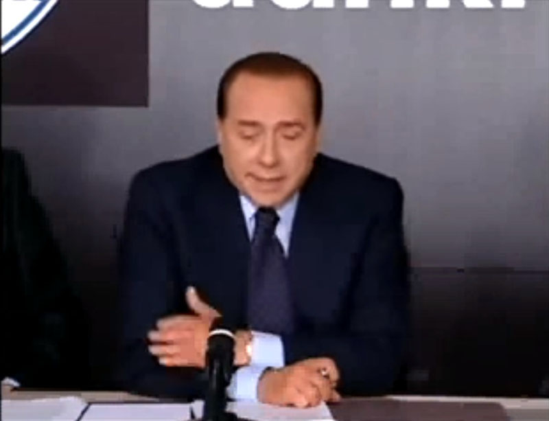 Pero lo que sigue, sin música, incluye parte de un discurso de Mussolini dirigido a sus combatientes, muestra a Berlusconi anunciando su plan de mantener a Alitalia como empresa italiana con inversores italianos y termina anunciando el fracaso con un comentario final lapidario (ver video).