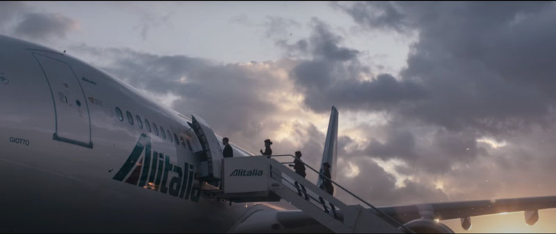 En ese momento Alitalia era una empresa del Estado, bien subsidiada, que los italianos creían eterna. Era lógico que se hiciera un clip como éste, en el que todo era optimismo y se muestran los nuevos aviones en un ambiente festivo frente al gran hangar para los Jumbos diseñado por el ingeniero Riccardo Morandi.