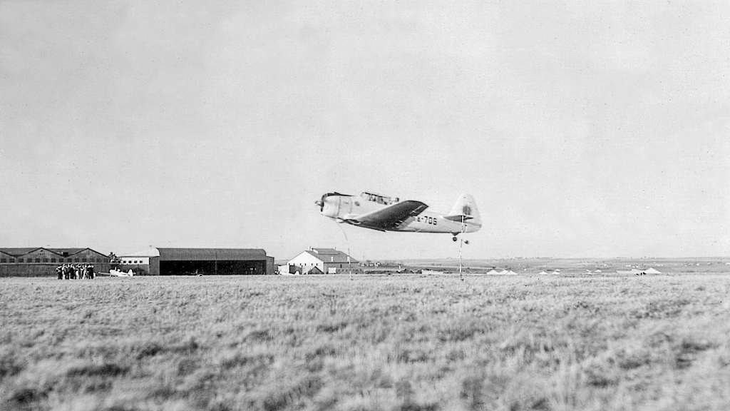 Esta maniobra consistía en recoger, en vuelo, un tubo con un supuesto parte o informe de operaciones, para luego ser lanzado o entregado a las autoridades.