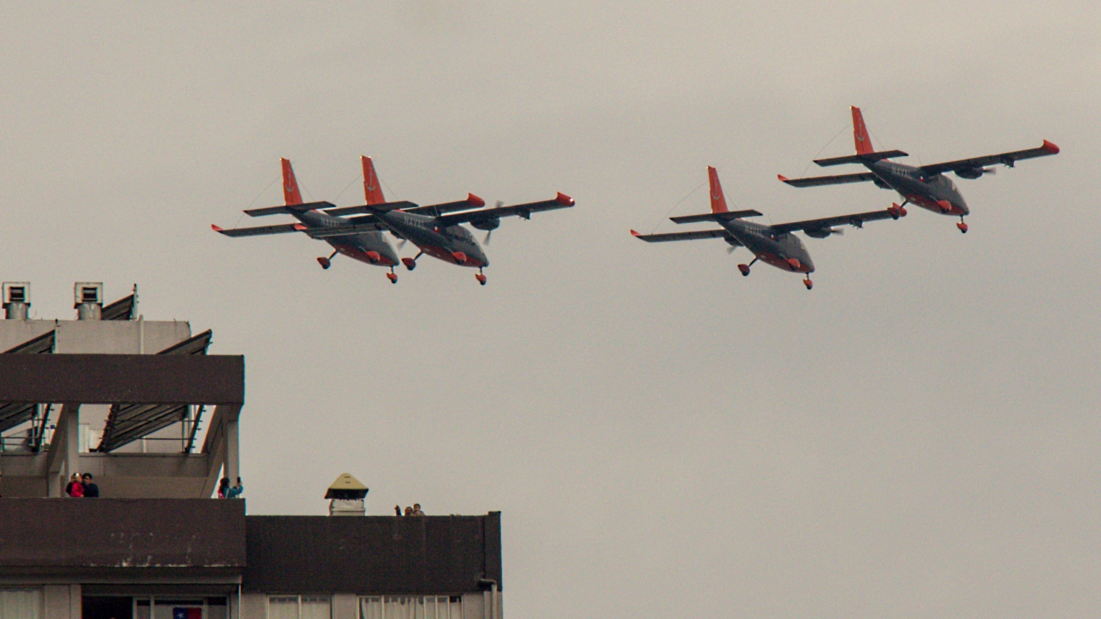 Los Vulcanair P68 de la Aviación Naval debutaron este año en la Gran Parada Militar (foto: Cristian Castro Marín).