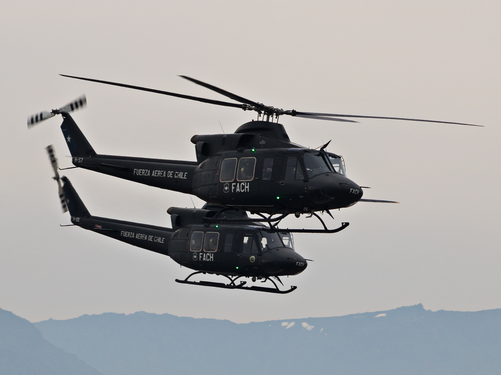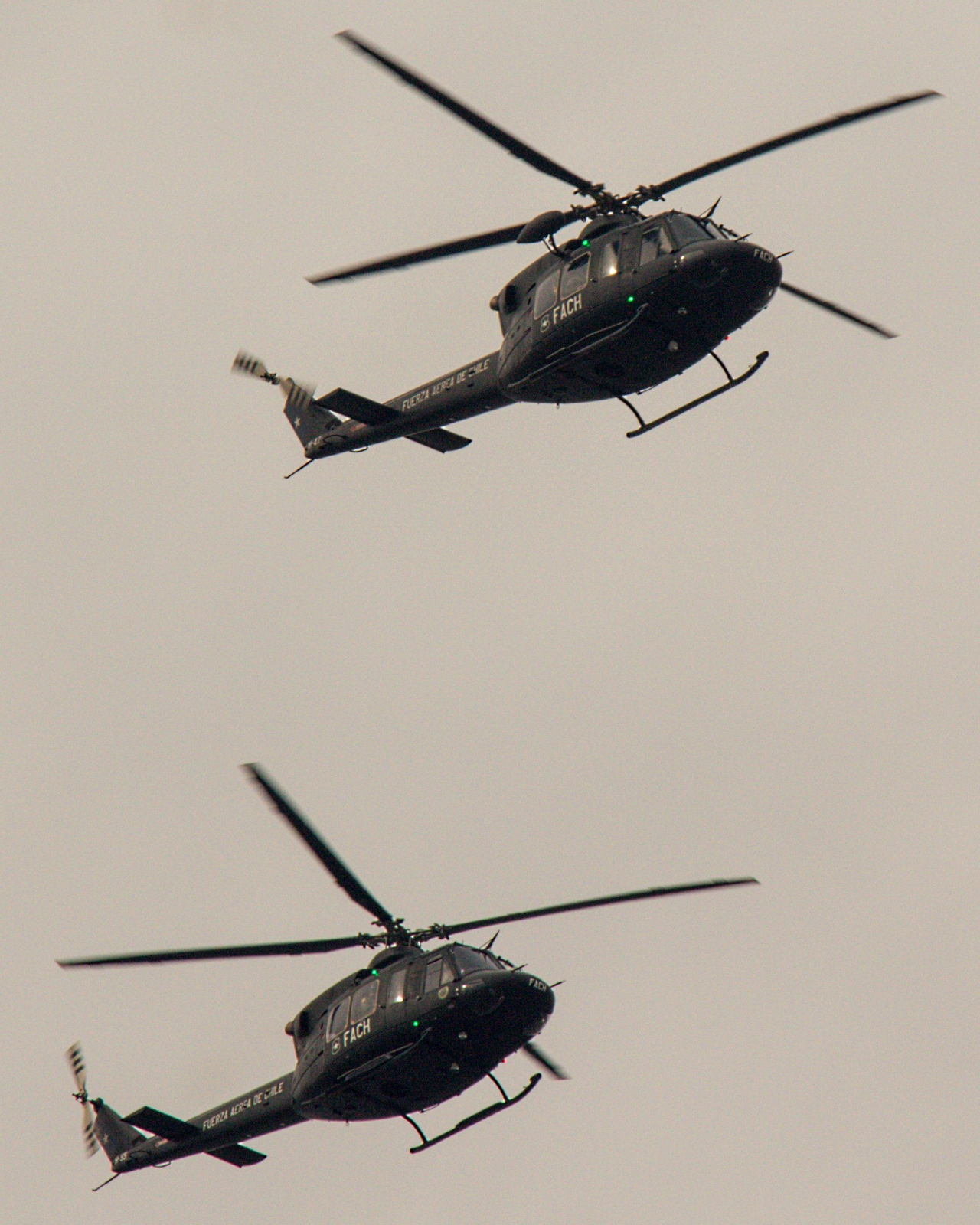 Bell 412 H-55 y H-57 despegando desde Arturo Merino Benítez para la parada militar del miércoles 19/09 (foto: Luis Quintana Aranguiz).