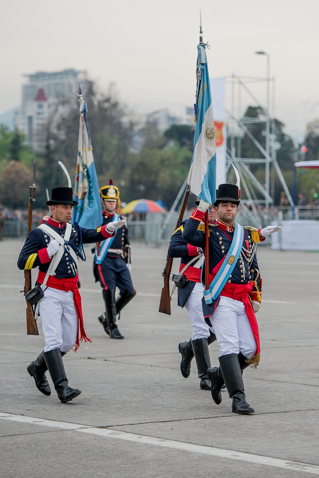 También participó en ese homenaje el Ejército Argentino, haciéndose presente con una delegación de abanderados y escoltas de los regimientos de Infantería 1 “Patricios” y de Granaderos a Caballo “General San Martín”, luciendo las banderas nacional argentina y del Ejército de los Andes y los estandartes de las propias unidades visitantes.