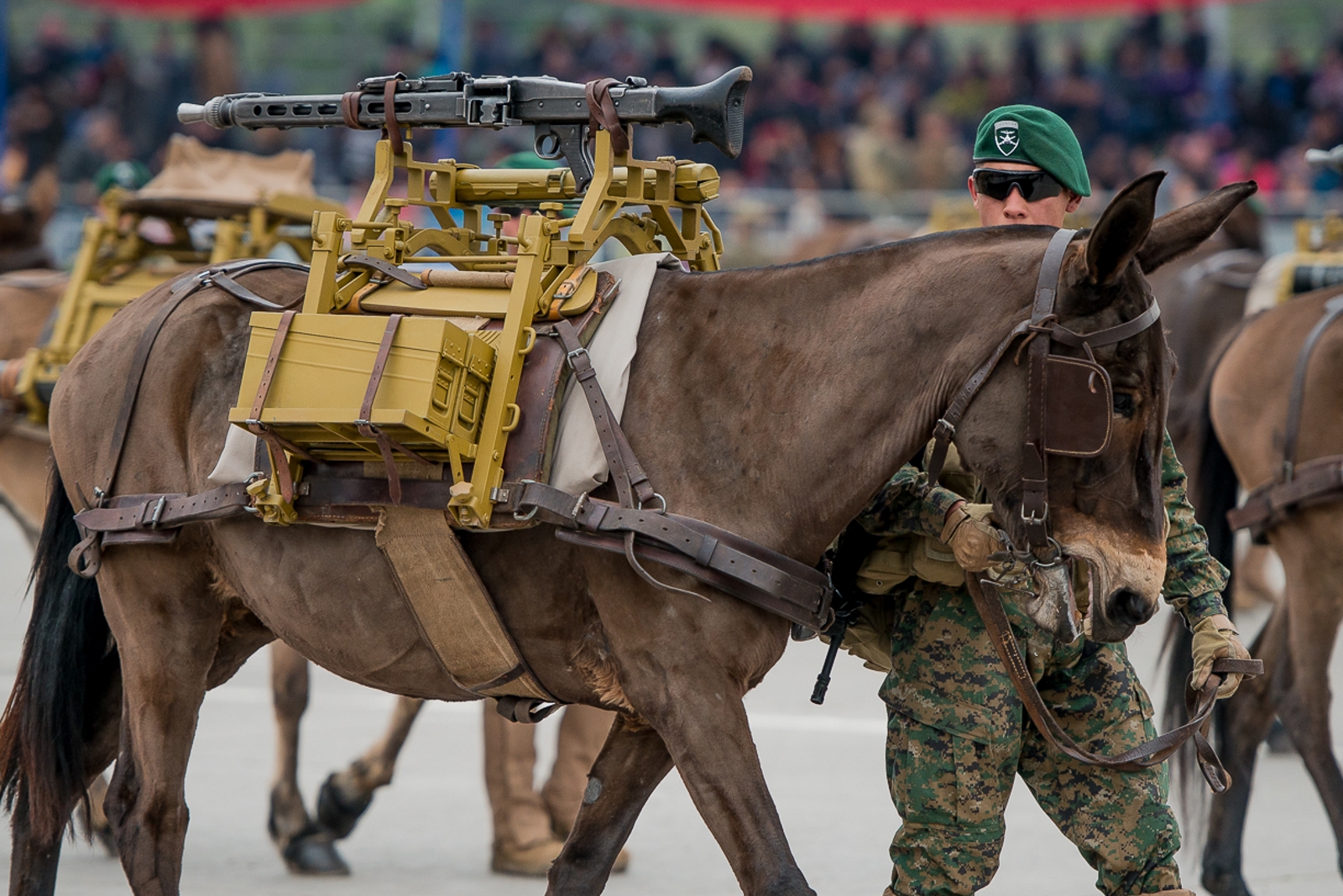 Una mula del Destacamento de Montaña No.3 «Yungay» ilustra su capacidad de traslado de ametralladoras pesadas (foto: Cristian Castro Marín).