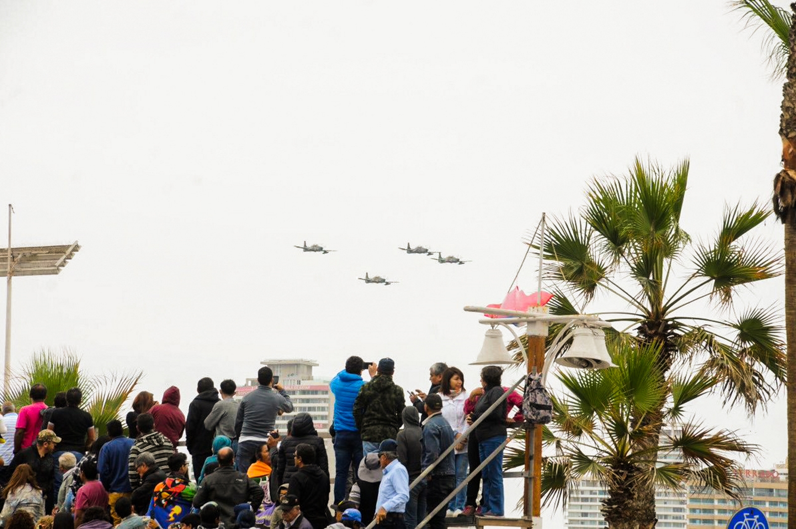 A diferencia de los dos años anteriores, la participación de medios aéreos en las ceremonias realizadas en regiones estuvo acotada sólo a la capital de la I Región, donde una sección aeronaval compuesta por un P68 Observer 2 y un MBB Bo-105 acompañó raudo el desfile del escalón naval y una “bandada” (escuadrilla) de cuatro EMB-314 Super Tucano sobrevoló Iquique acompañando el paso de los efectivos de la FACH durante la parada realizada el martes 18.