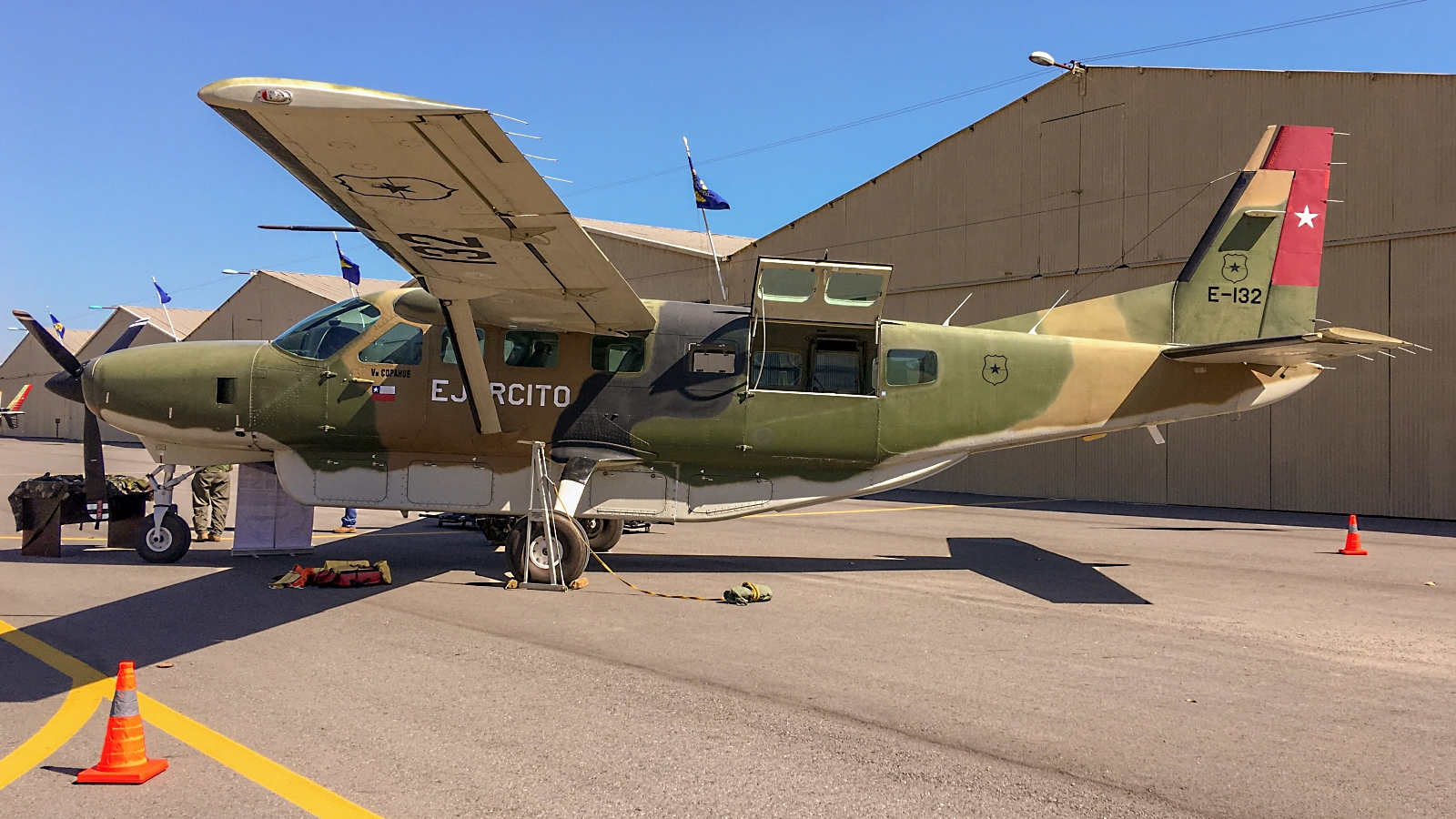 El Cessna 208 E-132 «Vn. Copahue» en las puertas abiertas del BAVE el sábado 01/09 (foto: Paola Lecaros Ampuero).