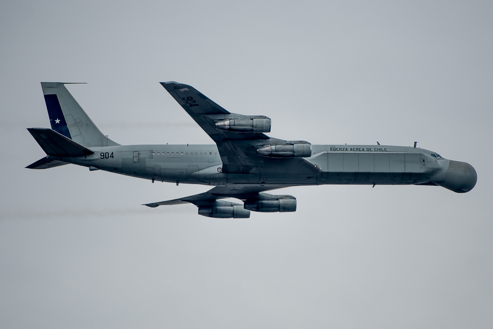 El siempre llamativo Boeing EB707 de vigilancia electrónica a su paso sobre el Parque O’Higgins (foto: Cristian Castro Marín).