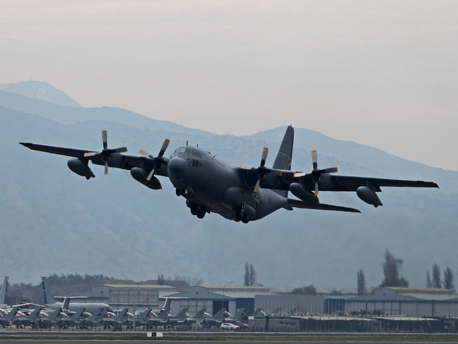 KC-130R Hercules 992 del Grupo 10, despegando de Arturo Merino Benítez para la parada militar del miércoles 19/09 (foto: Luis Quintana Aranguiz).