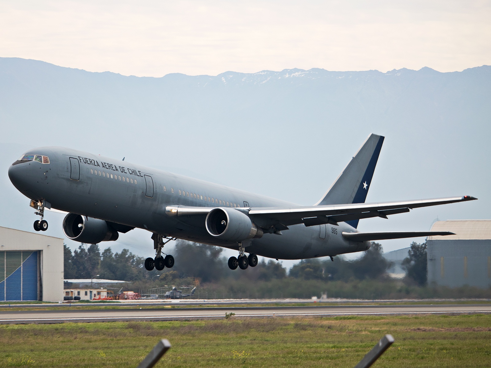 Boeing 767 985 992 del Grupo 10, despegando de Arturo Merino Benítez para la parada militar del miércoles 19/09 (foto: Luis Quintana Aranguiz).