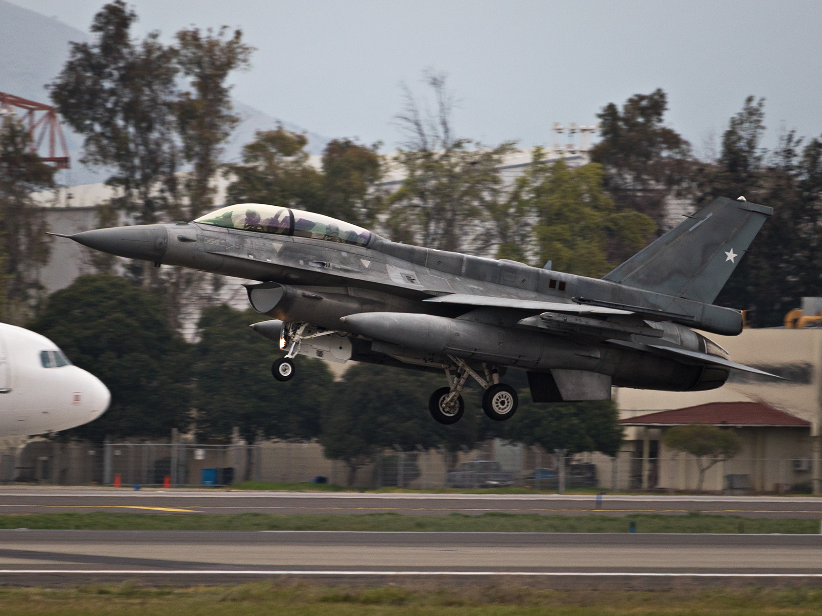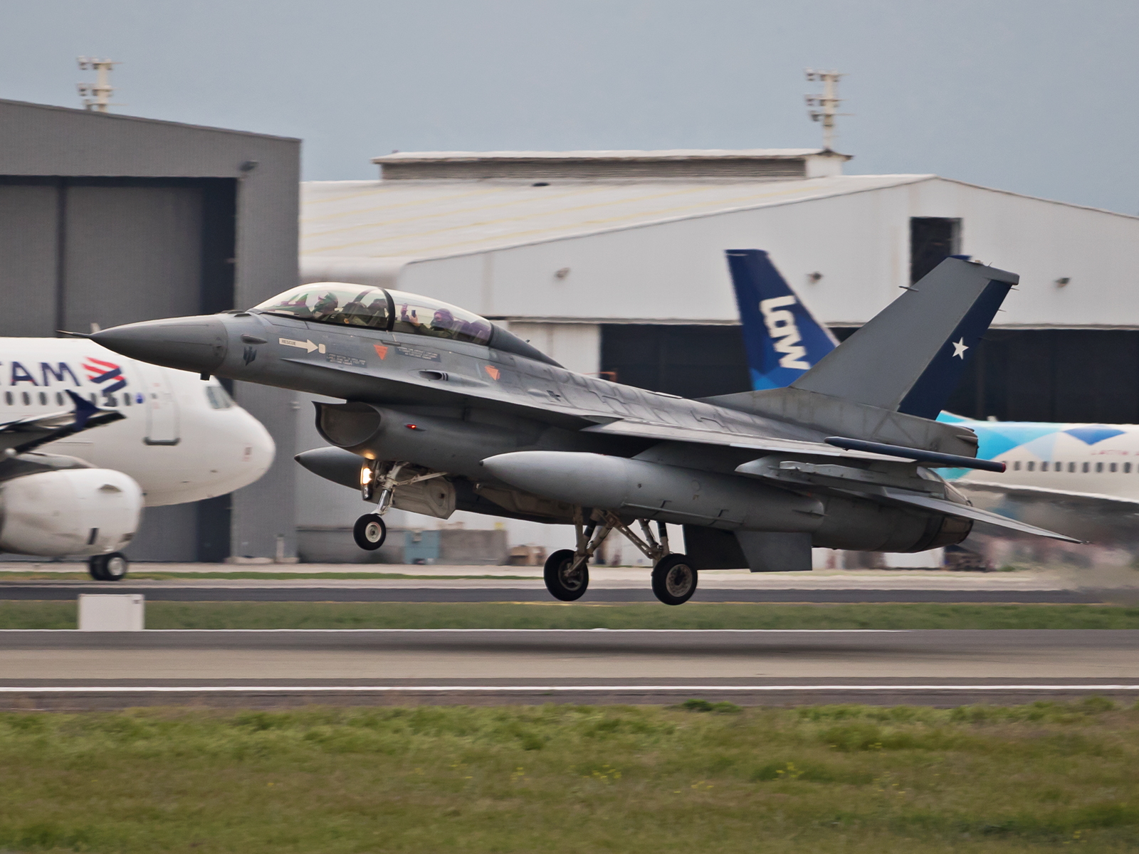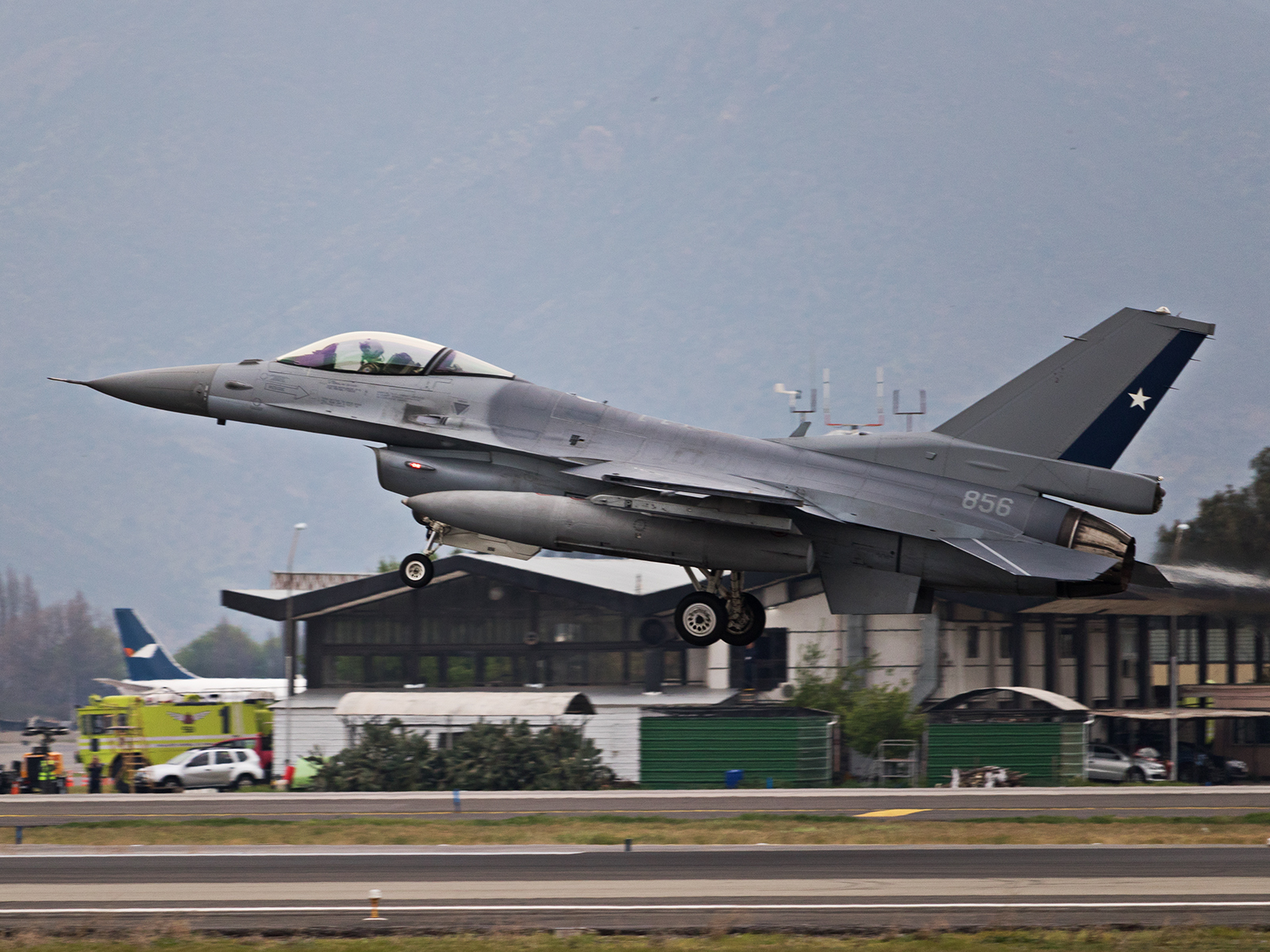 F-16D Viper 860 del Grupo 3 despegando desde Arturo Merino Benitez rumbo al Parque O’Higgins el miércoles 19 (foto: Luis Quintana Aranguiz).