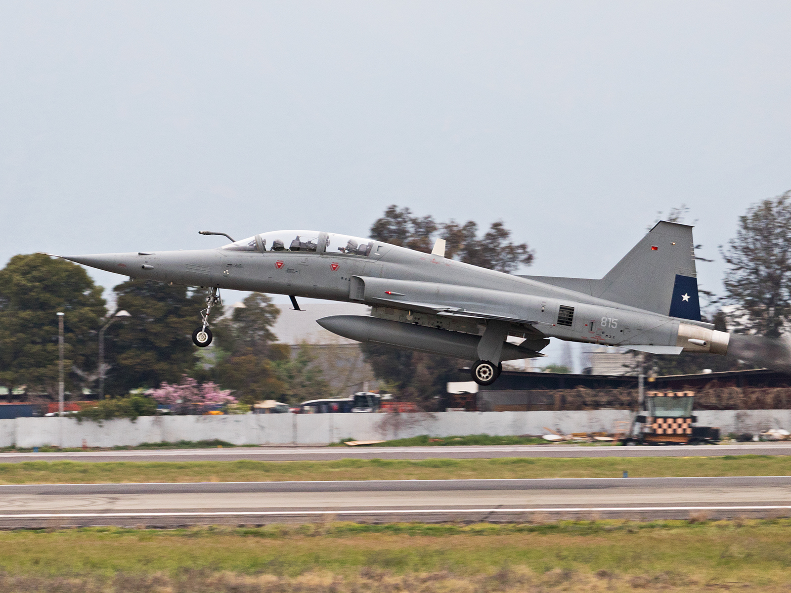 Parte de la flota de F-5 presenta una coloración mas oscura que la tradicional, tal como sucede en este ejemplar biplaza (foto: Luis Quintana Aranguiz).