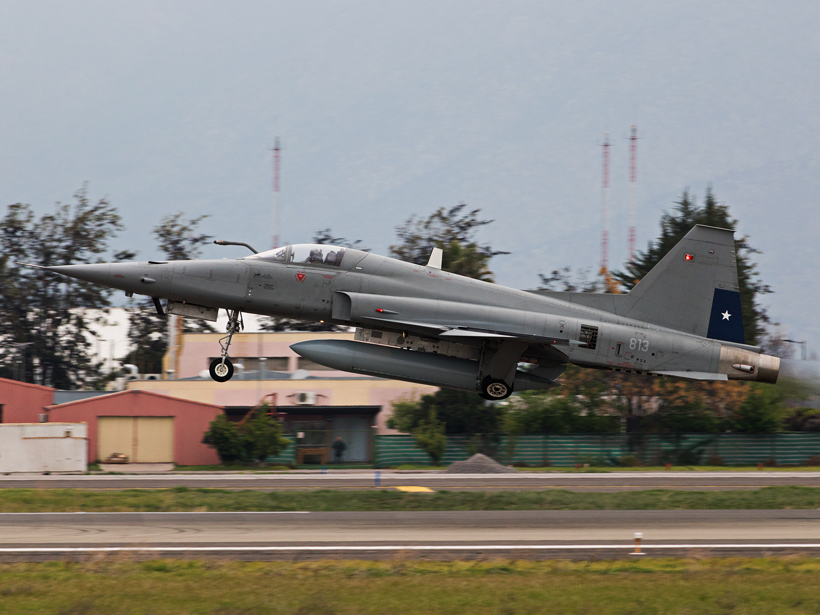 El F-5E Tigre III 813 despega desde Arturo Merino Benítez rumbo al encuentro del avión cisterna al que acompañaría a su paso por la elipse del Parque O’Higgins (foto: Luis Quintana Aranguiz).